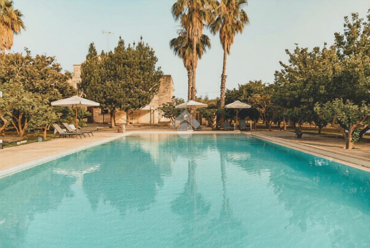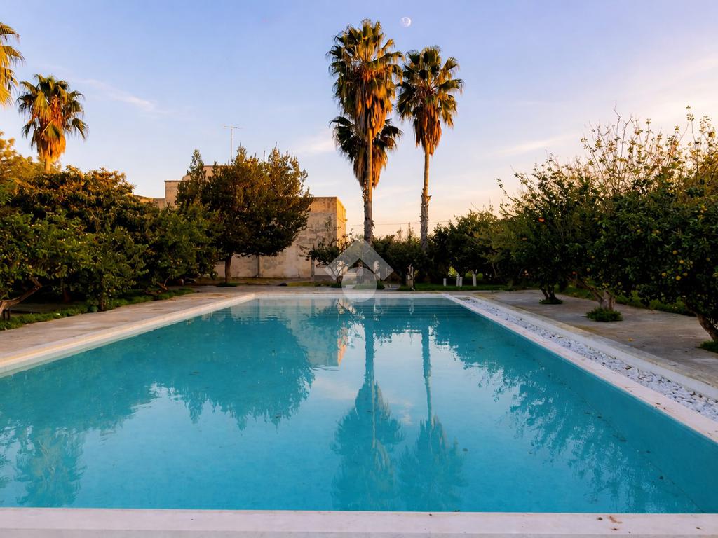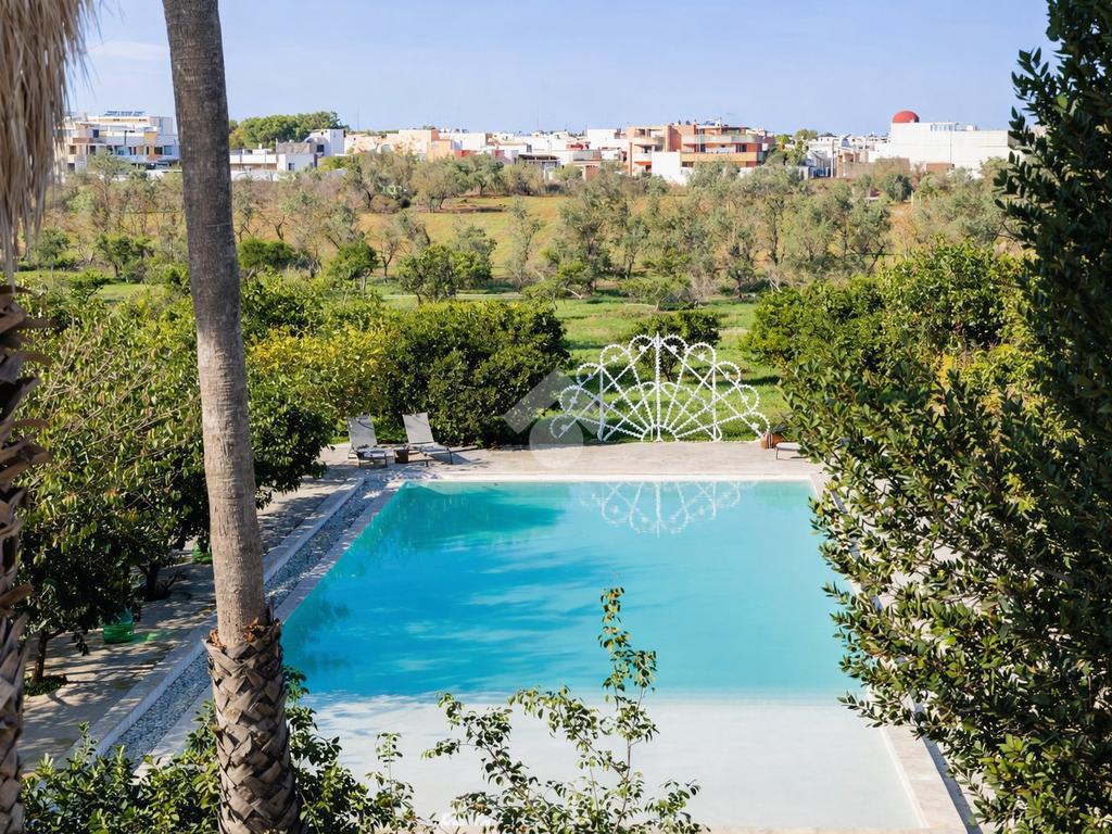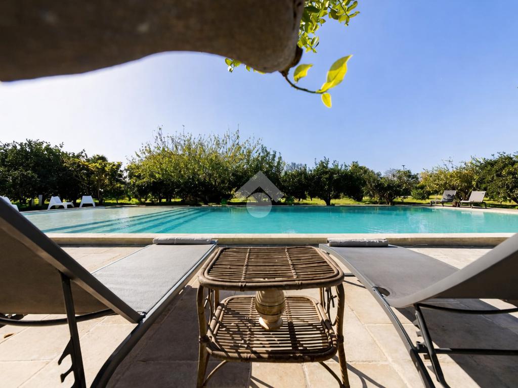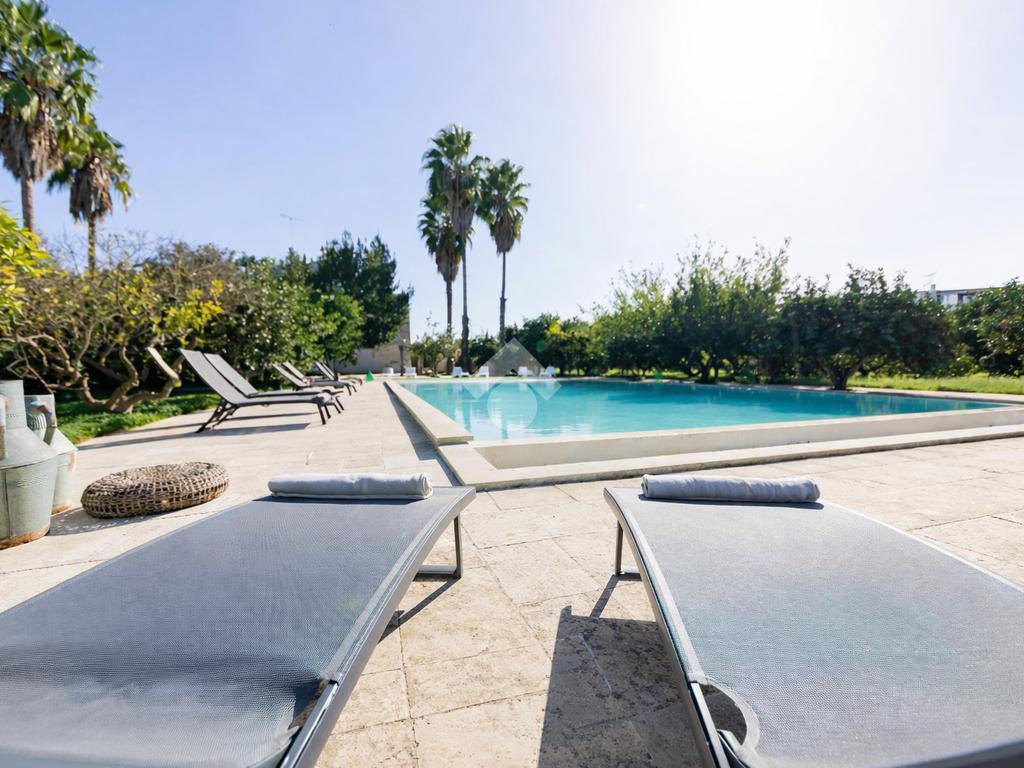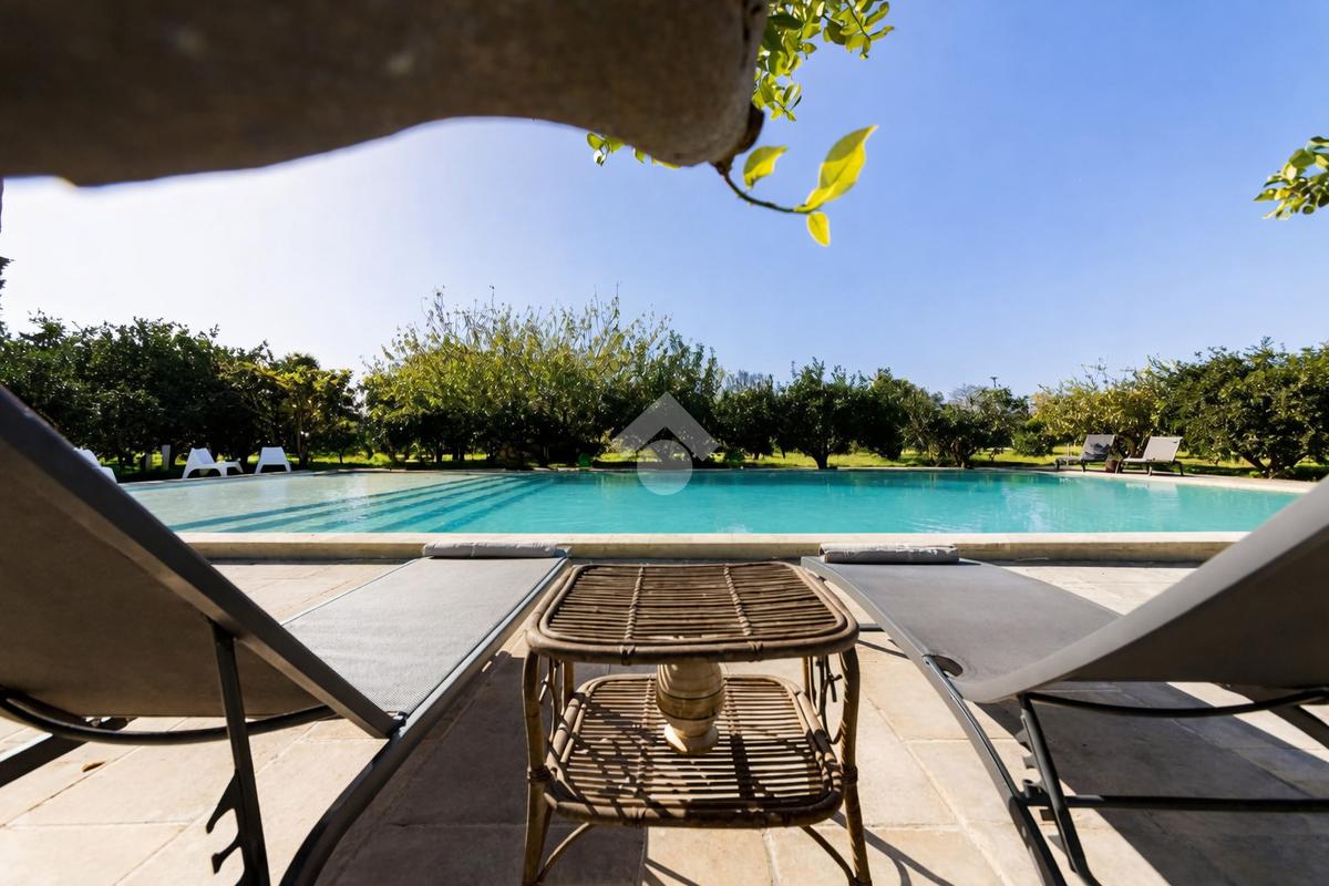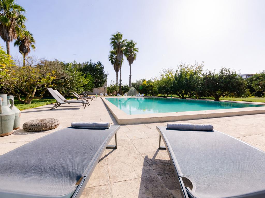 All’esterno, la masseria si apre su un ampio terreno curato, dove la natura mediterranea fa da cornice a spazi già organizzati per il relax e la convivialità. Elemento distintivo e di grande impatto è la straordinaria piscina, perfettamente inserita nel paesaggio, che conferisce alla proprietà un ulteriore livello di esclusività e la rende ideale per vivere momenti di totale relax o per accogliere ospiti in un contesto di grande charme.