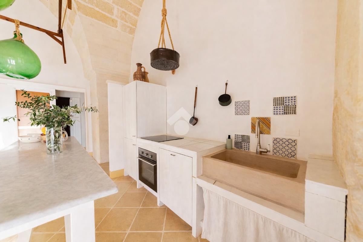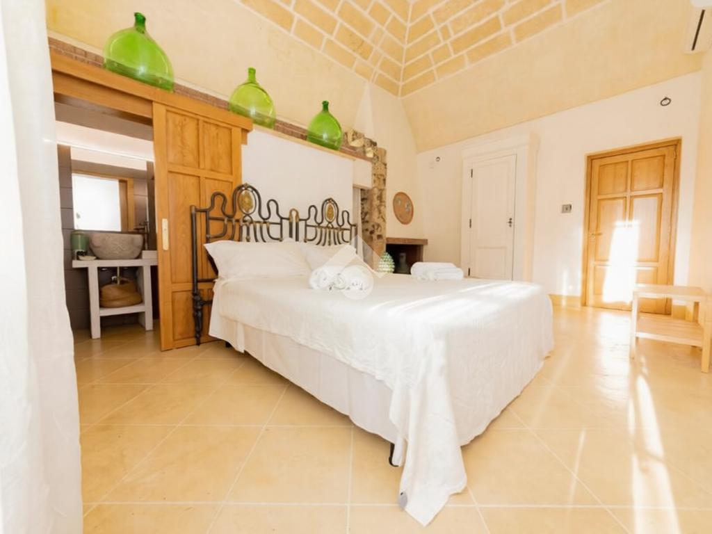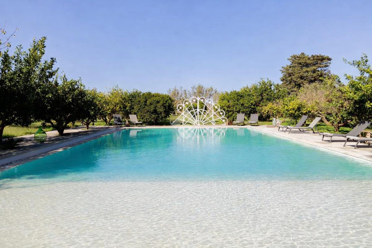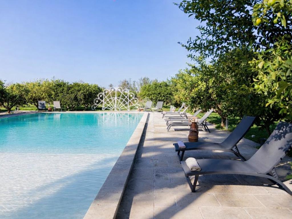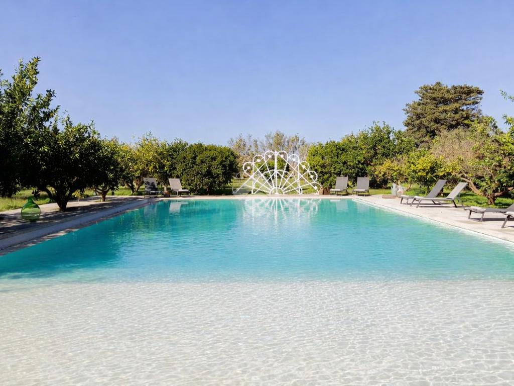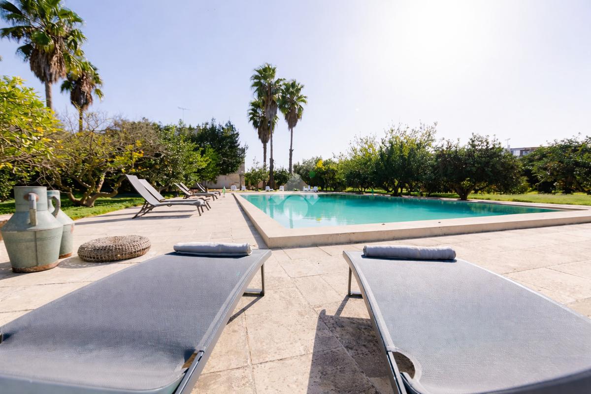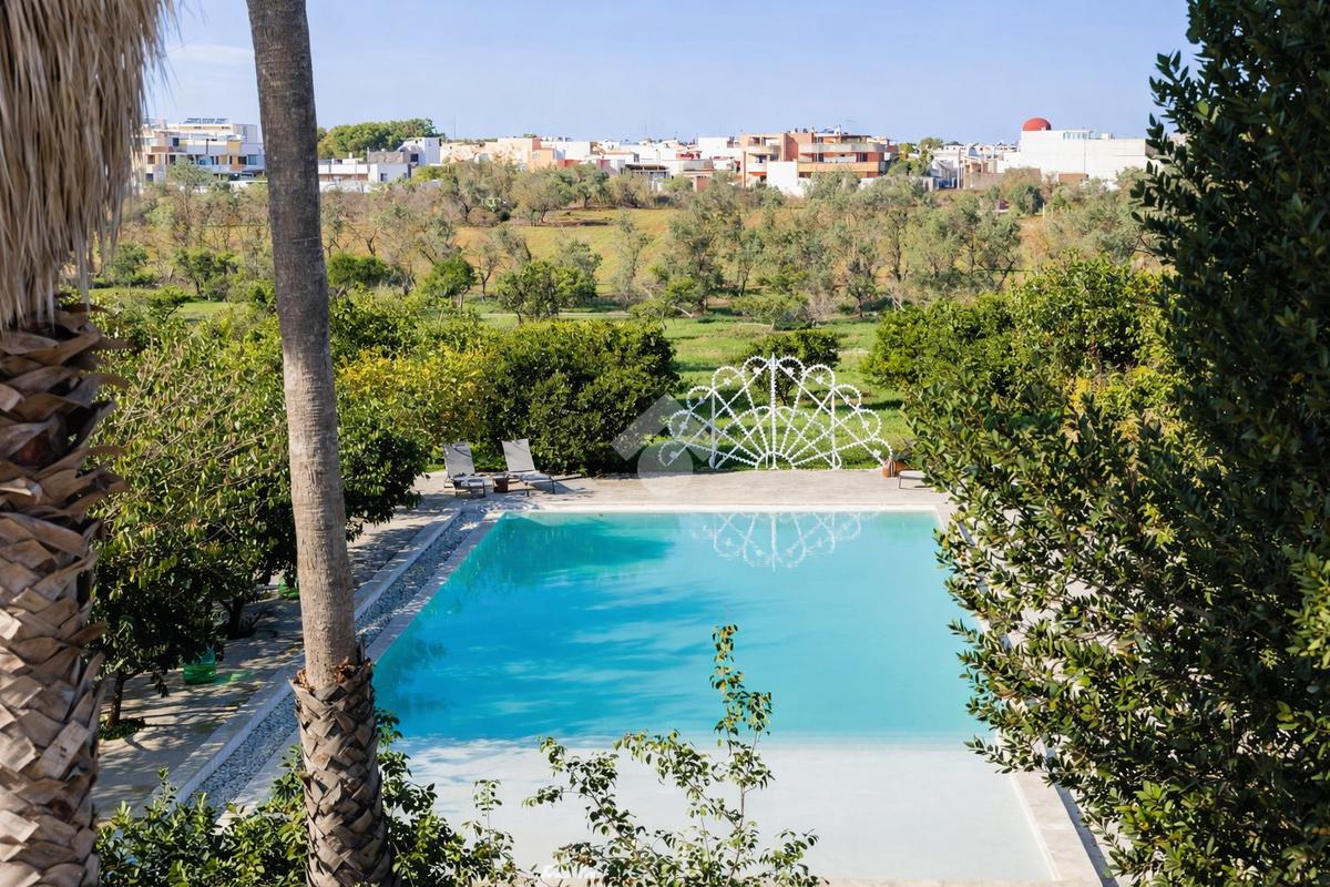 All’esterno, la masseria si apre su un ampio terreno curato, dove la natura mediterranea fa da cornice a spazi già organizzati per il relax e la convivialità. Elemento distintivo e di grande impatto è la straordinaria piscina, perfettamente inserita nel paesaggio, che conferisce alla proprietà un ulteriore livello di esclusività e la rende ideale per vivere momenti di totale relax o per accogliere ospiti in un contesto di grande charme.