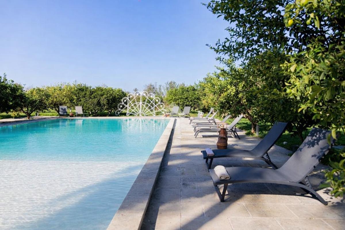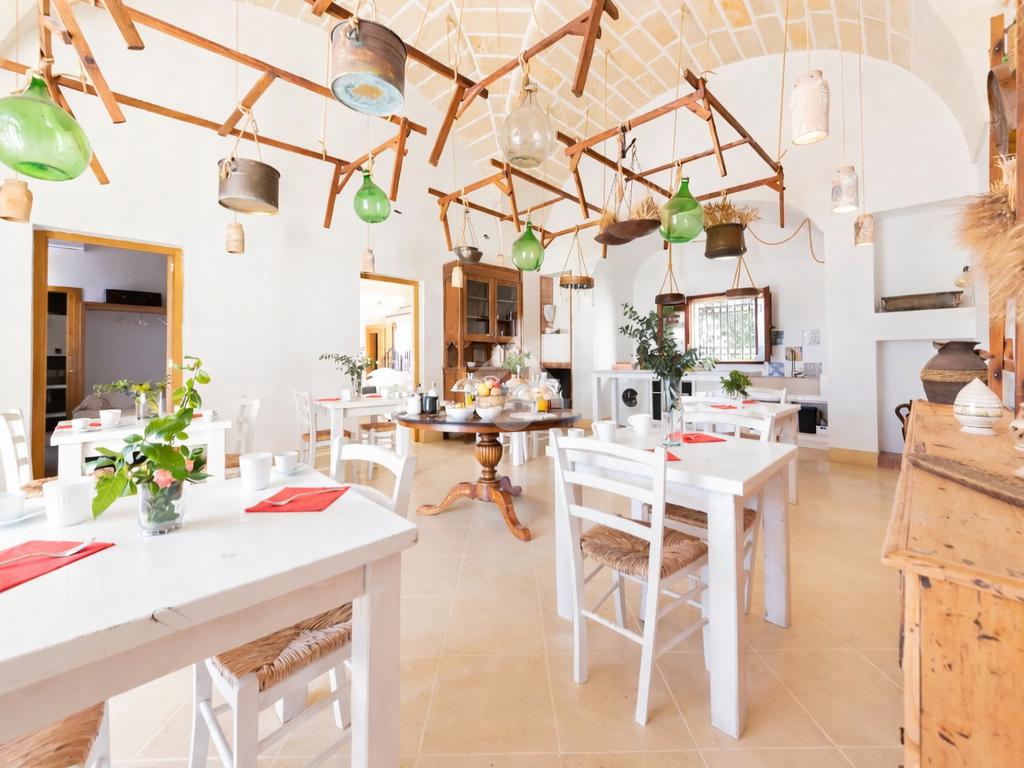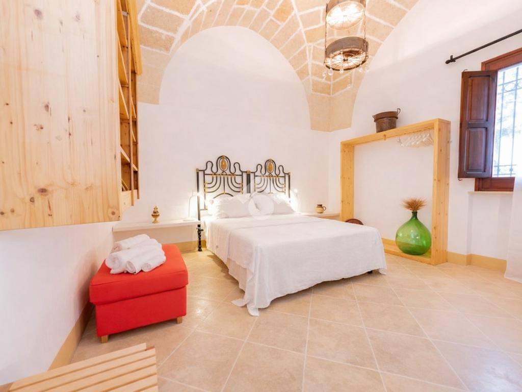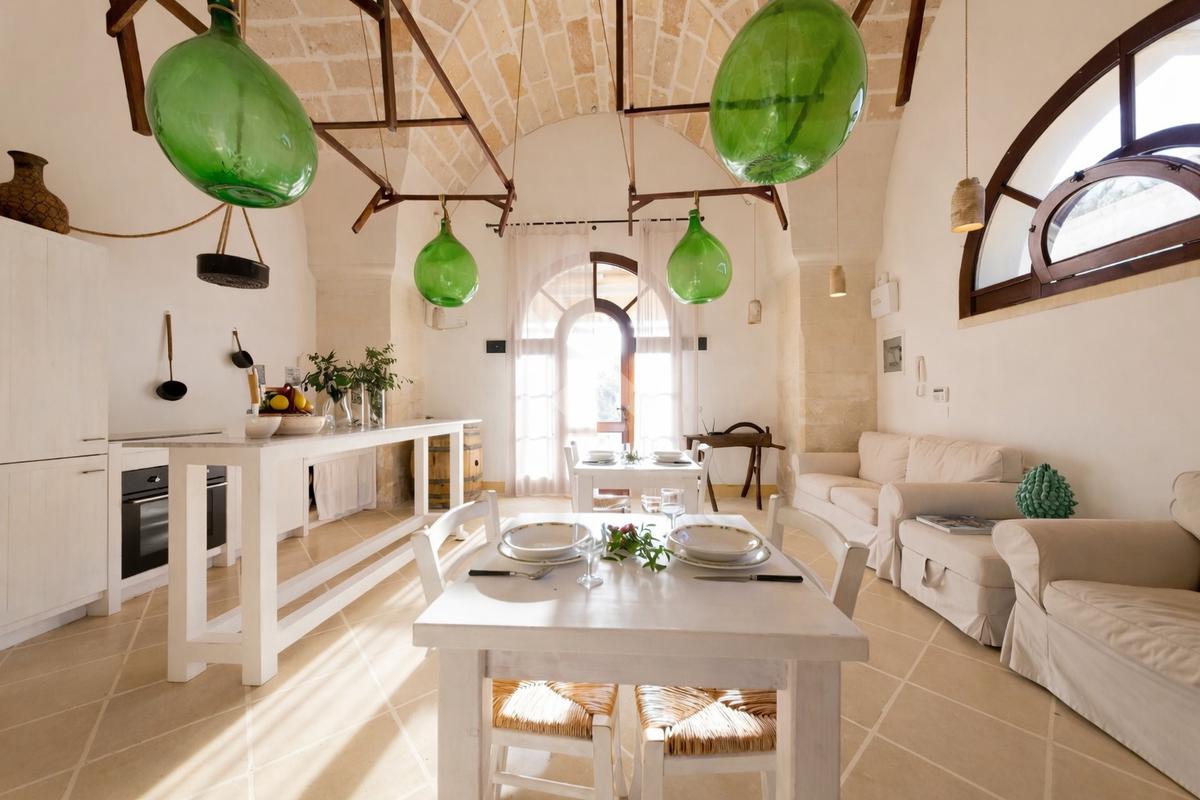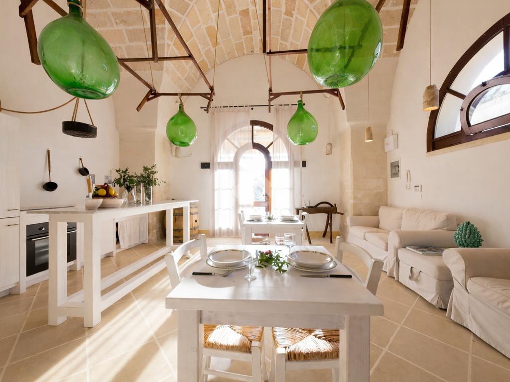 Immersa in un contesto di assoluta quiete, tra ulivi secolari e paesaggi tipici della campagna pugliese, la masseria si distingue per il suo carattere autentico e per la capacità di trasmettere un senso di accoglienza e benessere fin dal primo sguardo. Le architetture originarie sono state sapientemente recuperate, valorizzando le caratteristiche volte a stella e a botte in pietra leccese e mantenendo intatta l’identità storica dell’immobile, oggi perfettamente integrata con finiture e soluzioni moderne.